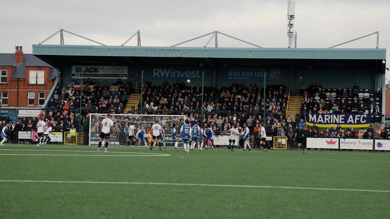 The 17th minute arrived with Marine having another opportunity as Fin Sinclair-Smith’s effort was denied brilliantly by Jordan Richards.